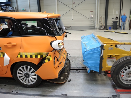 ADAC vyzkoušel bezpečnost menšího velkoprostorového auta při nárazu zezadu v rychlosti 60 km/h. Test se zaměřil na vůz Fiat 500L Living.